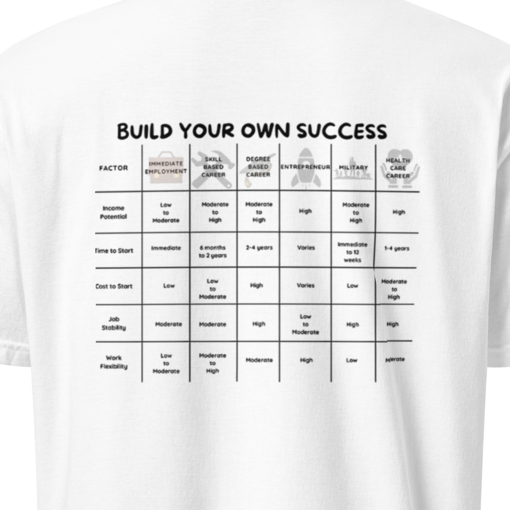 Starting a business takes more than just knowledge and resources—it takes motivation. Keeping yourself inspired through the ups and downs of entrepreneurship can be tough, but staying focused on your goals is key. That’s where our “Build Your Own Success” t-shirt comes in.
